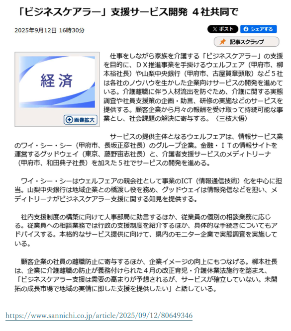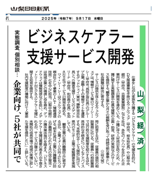 この度、先日お知らせした山梨県内企業との業務提携が、2025年9月17日付の山梨日日新聞にて紹介されました。