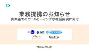 2025年9月1日 ウェルフェア株式会社 / 株式会社山梨中央銀行 / 株式会社グッドウェイ / メディトリーナ株式会社 この度、メディトリーナ株式会社はウェルビーイングな社会の実現に向けた一歩と位置づけ、山梨県内企業と […]