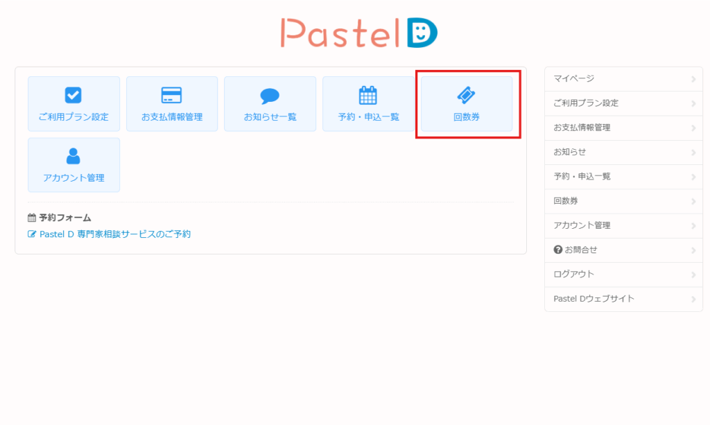 ログイン後の画面で「回数券」をクリックしてご購入ください。