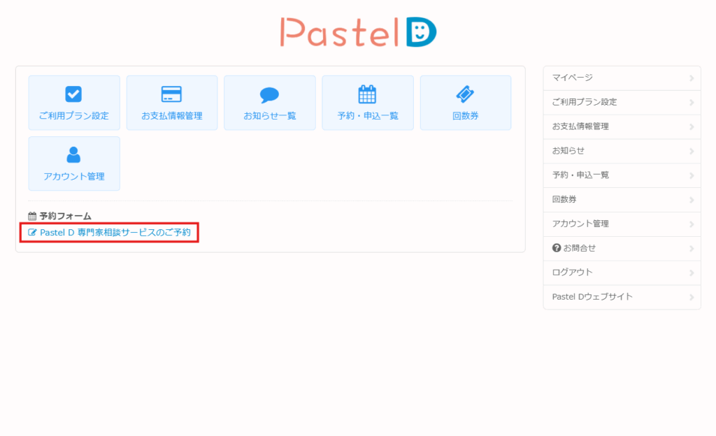 「Pastel D 専門家相談サービスのご予約」をクリックしてください。