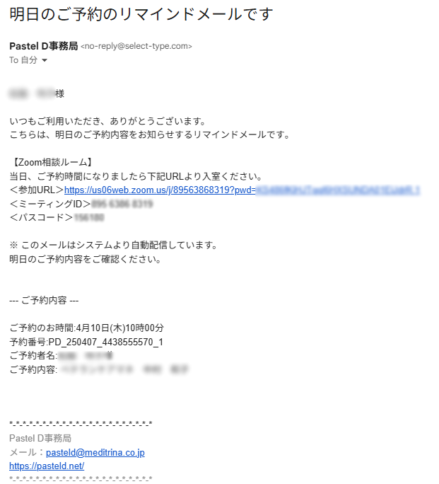 ご相談日前日の朝6:00頃、リマインドメールが届きます。